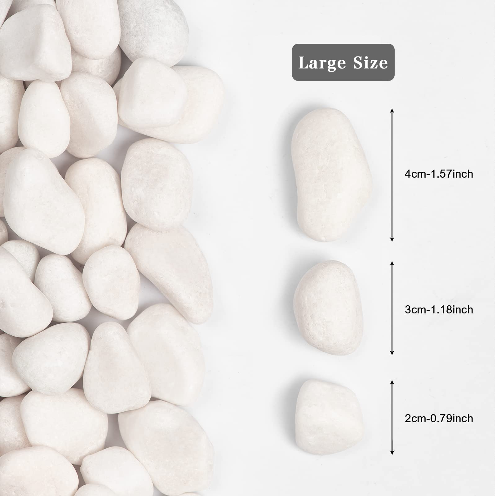 Snow White Natural River Rocks Polished Pebbles for Landscaping, Plants, Fish Tank, Vases, Succulents, Crafting, Home Decor ,0.7"-1.6"
