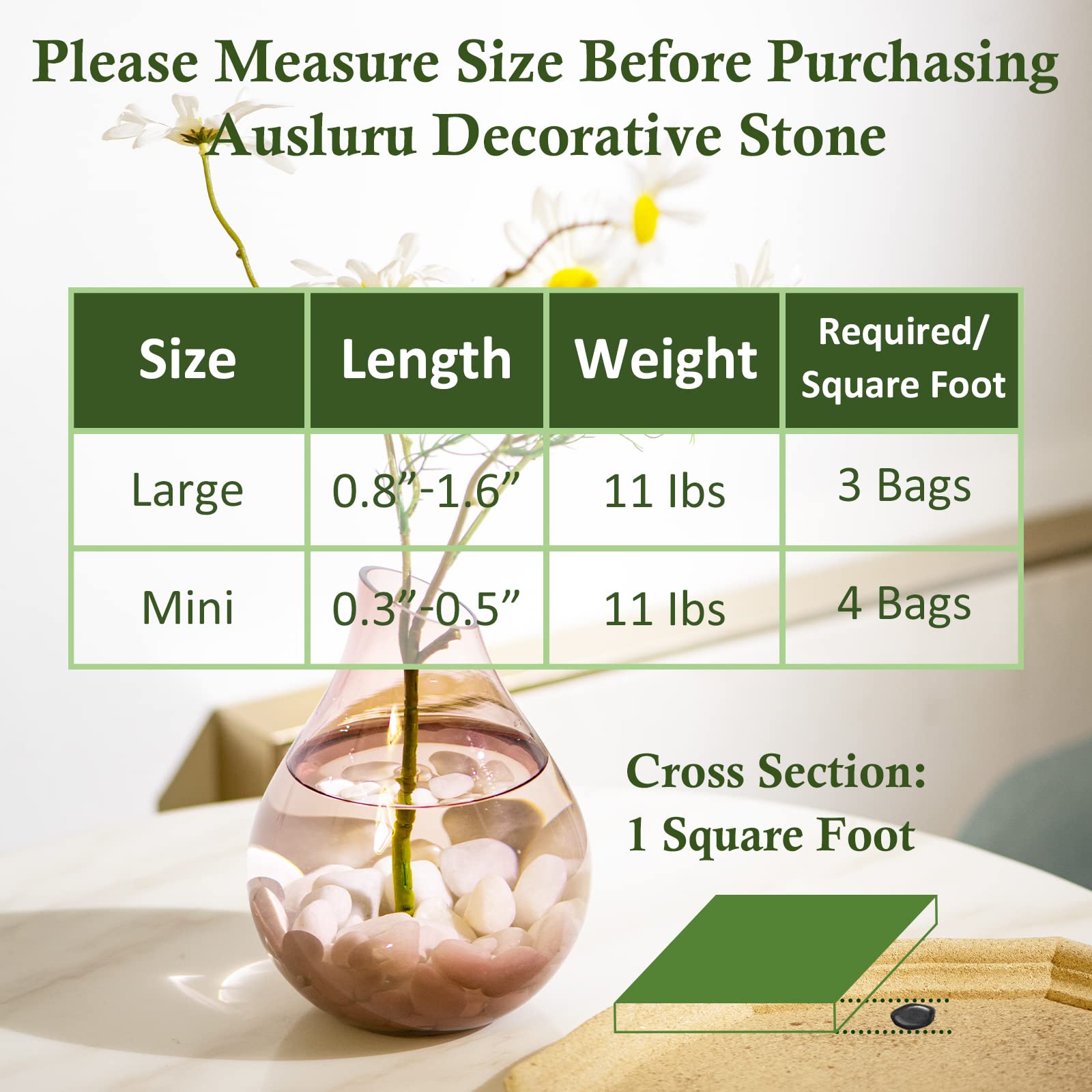 - 【Multiple uses】Ausluru polished river rocks are very popular in weddings, floral decoration events and seasonal decorations! These gravels are ideal to stabilize the pillar candles and great for decoration of aquariums, fountain gardens, flower arrangements, walkways, swimming pool areas and so on.