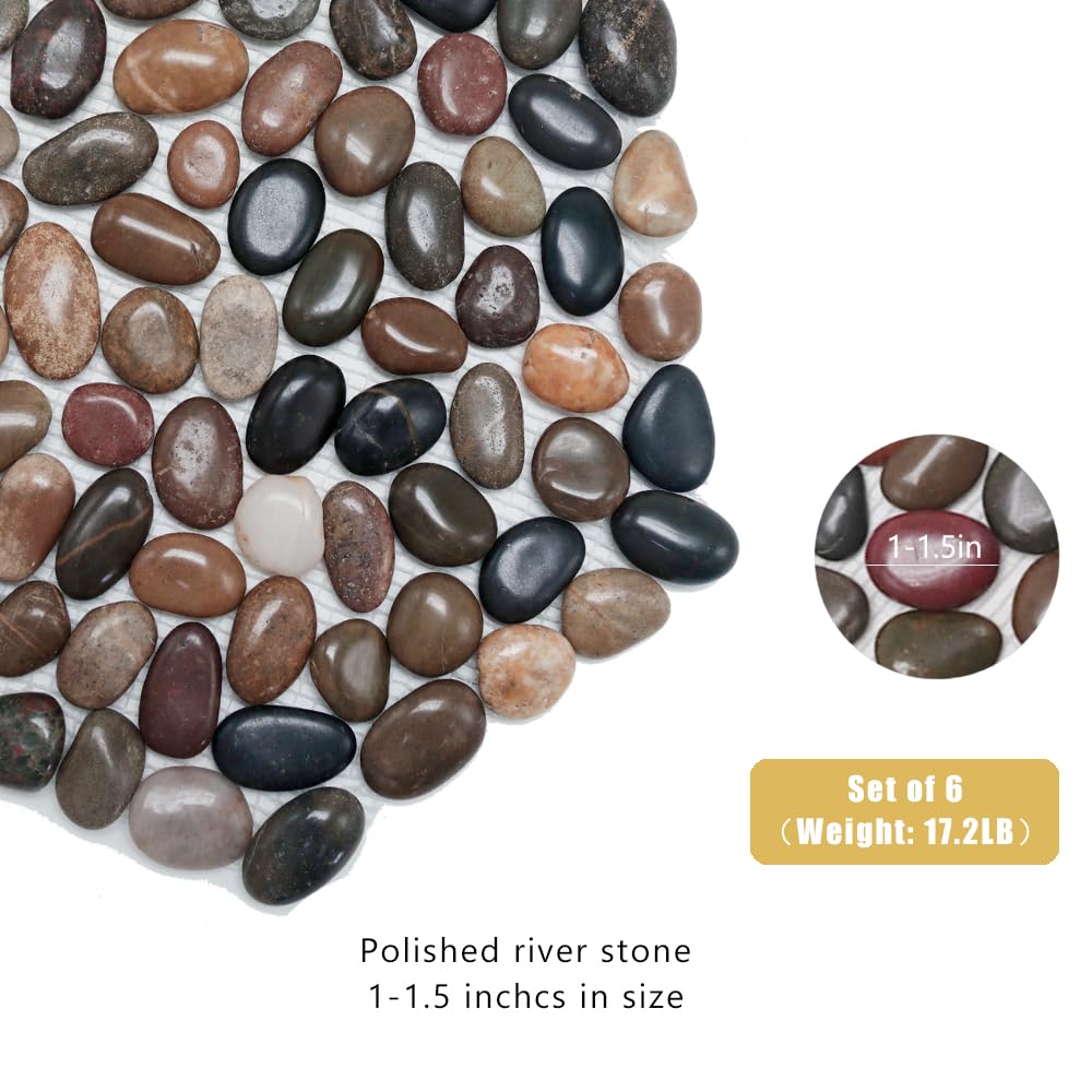 12 inch River Rock Stepping Stone - Pavers for Outdoor Garden Walkway, Landscaping,Hexagon Set of 6
