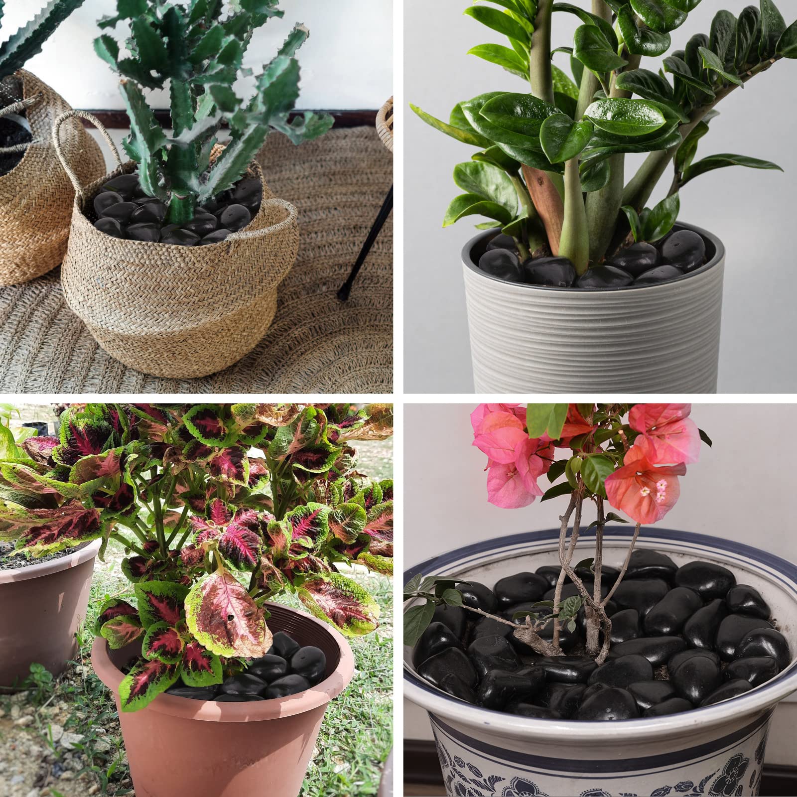 Black River Rocks for Landscaping-Polished Pebbles for Plants-Garden Decorative Stones-1-2" Large Plant Rocks,Ideal for Aquarium, Home Decor