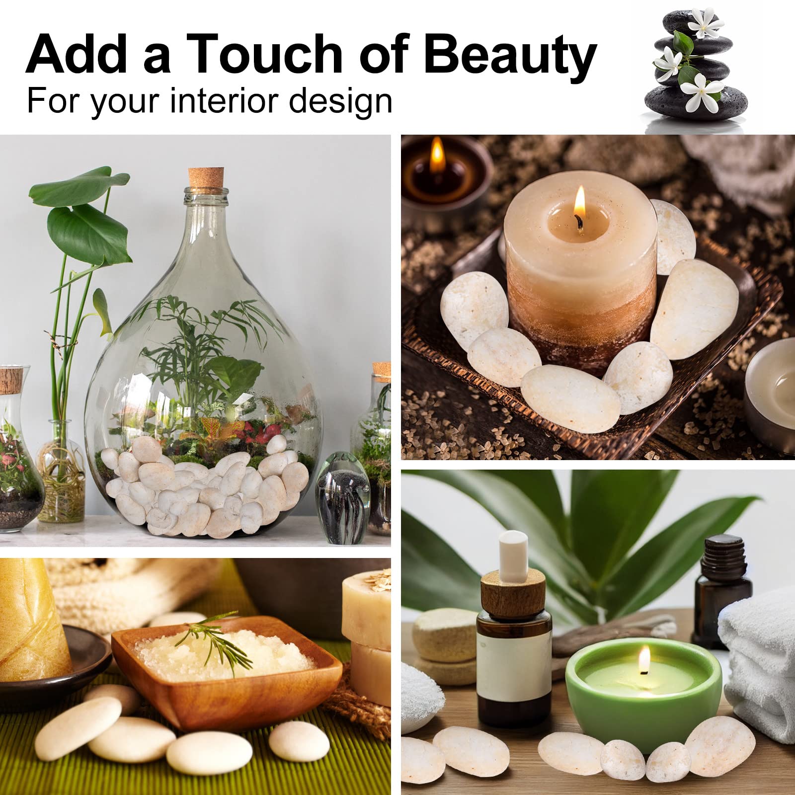 - Mutiple Uses: Our cream white rocks can be used in many places: landscaping pebbles, add beauty to your garden, fountain, flower bed, turn your backyard into a beautiful resort look. you can also use the white rocks to decorate vases or aquarium to make them look more attractive. Our rocks are popular in weddings, floral arrangement and seasonal decorations.Our rocks are also great painting rocks and great gift for mom or grandparents to decorate their garden in the upcoming spring and summer