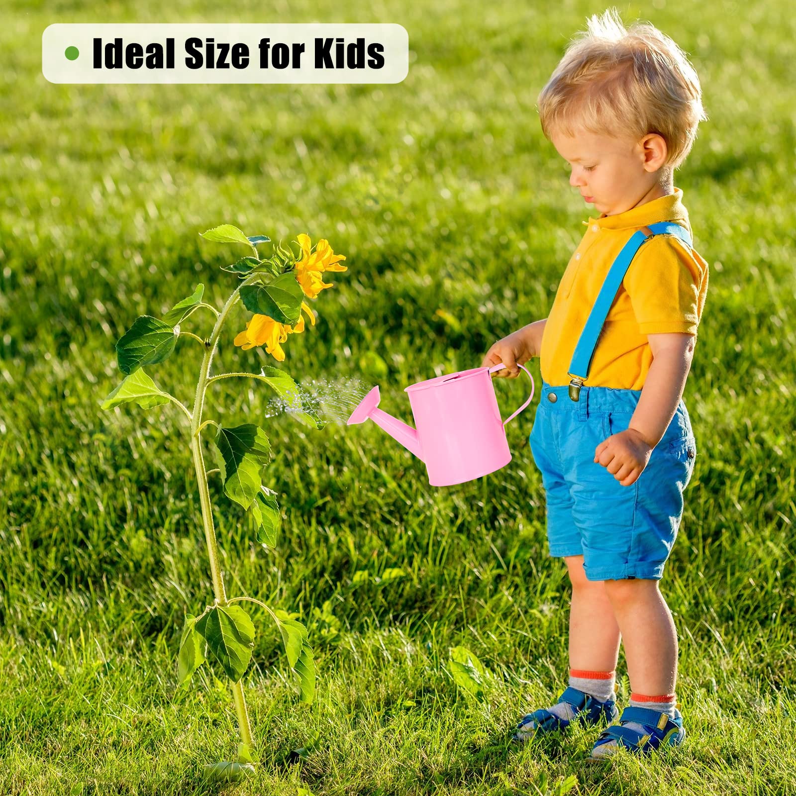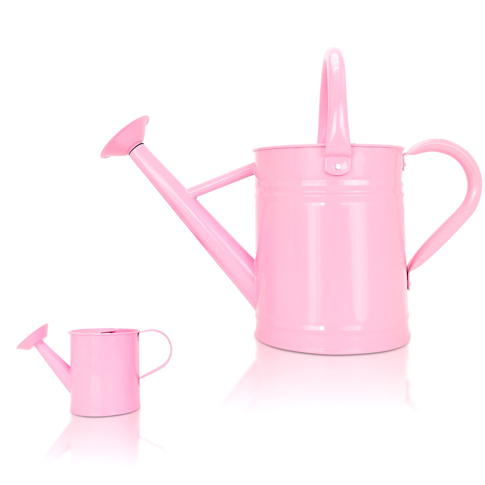 Metal Watering Can (1 Gallon) for Outdoor&Indoor Plants with Free Small Watering can for Kids, Plant Watering Can with Removable spout, Perfect for Garden Flower, Houseplants, Pink