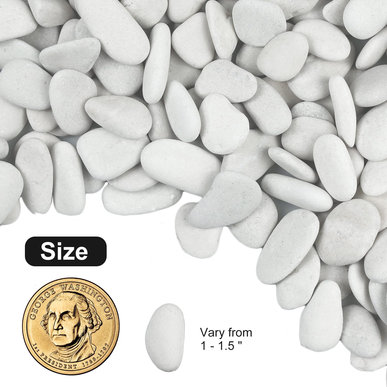 - COLOR AND SIZE: Lechloris pearl white river rock stone is about 1 to 1.5 inches, the size and the beautiful pearl white color makes these rocks ideal for any home decor & garden design for a unique decorative assent. Especially If you use river rocks to decorate large indoor plants or put them in a vase with flowers, our pebbles with perfectly polished accent will make your plants and vase really stand out.