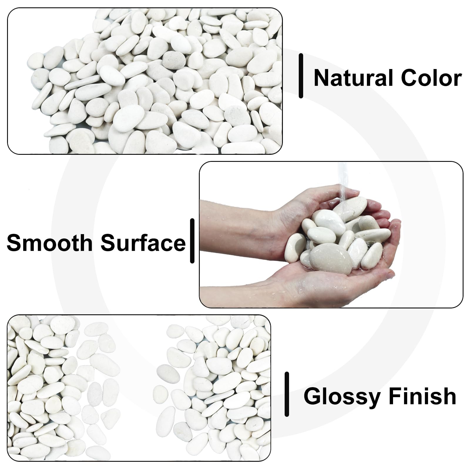 - MULTIPLE USES: It is most commonly to use our pearl white pebbles as a decorative addition to any size potted plants, aquarium, vases, terrariums, bonsai, succulent planter, candle holder etc and our rocks are popular in weddings, floral arrangement and seasonal decorations. Rocks will give the arrangement a natural,earthy feel. Natural river rock are perfect for outdoor landscaping, add beauty to your garden, patio, fountain, walkways, turn your backyard into a beautiful resort look.