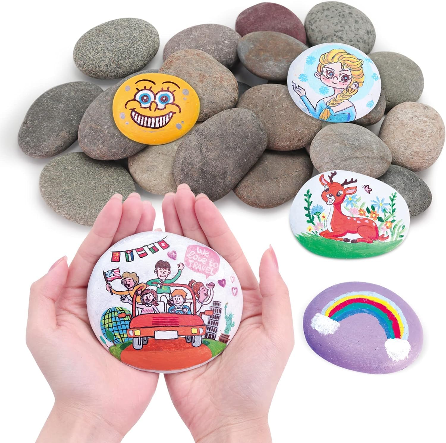 - PERFECT ART CRAFT FOR KIDS & ADULT – Rock painting is a real fun thing to do for adults and kids. Letting them enjoy the colors and texture of the river stones! Encourage children to think, developing skills,learn to trust their ideas and confidence. What’s more, the finished work on the flat rocks serve as great decorations and heartwarming gifts - Paint flowers and put in your grandma's garden to give her a surprise, spend quality family time by painting on rocks!