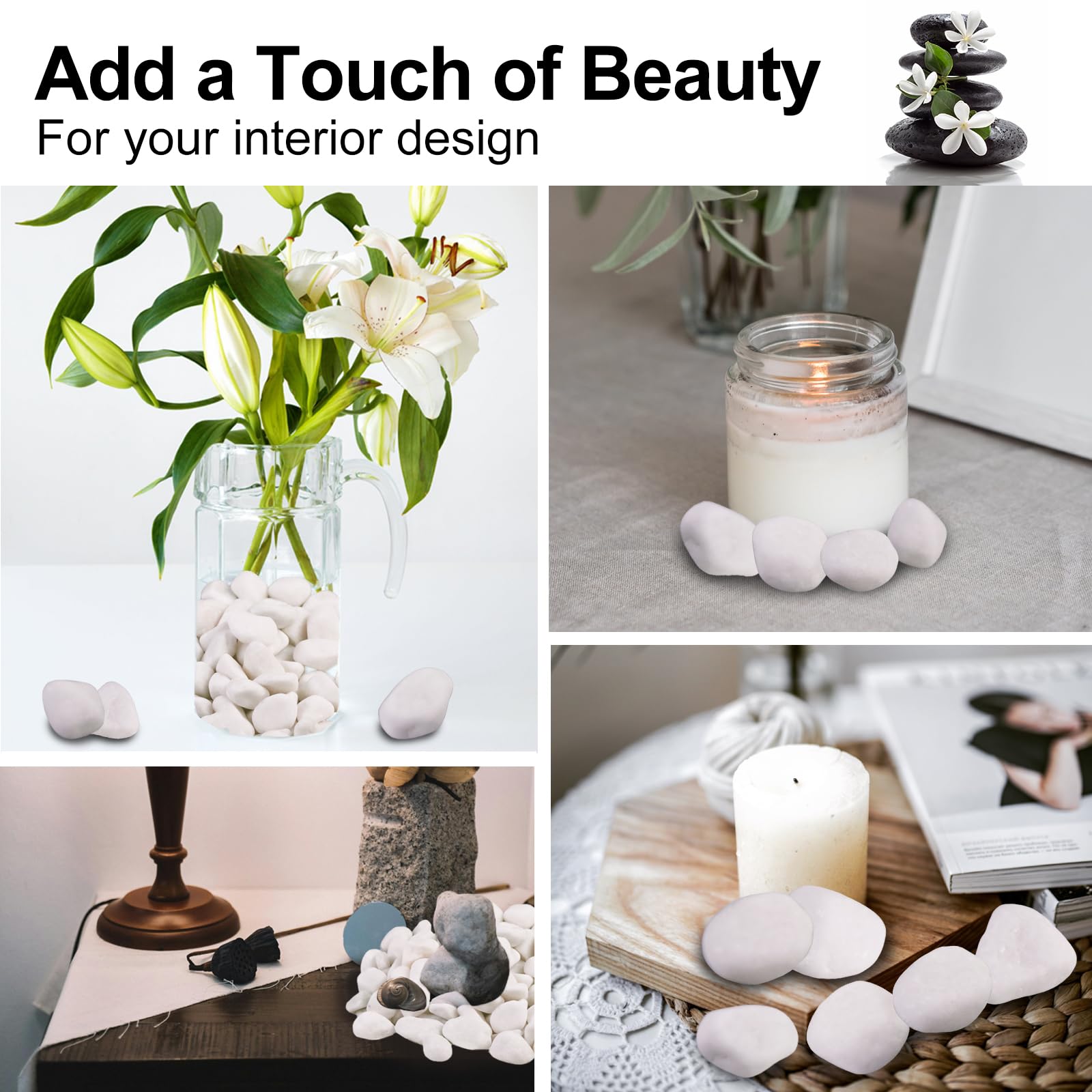 - MULTIPLE USES: It is most commonly to use our snow white polished pebbles as a decorative addition to ay size potted plants, aquarium, vases, terrariums, bonsai, succulent planter, candle holder etc and our rocks are popular in weddings, floral arrangement and seasonal decorations. Rocks will give the arrangement a natural,earthy feel. Natural river rock are perfect for outdoor landscaping, add beauty to your garden, patio, fountain, walkways, turn your backyard into a beautiful resort look.
